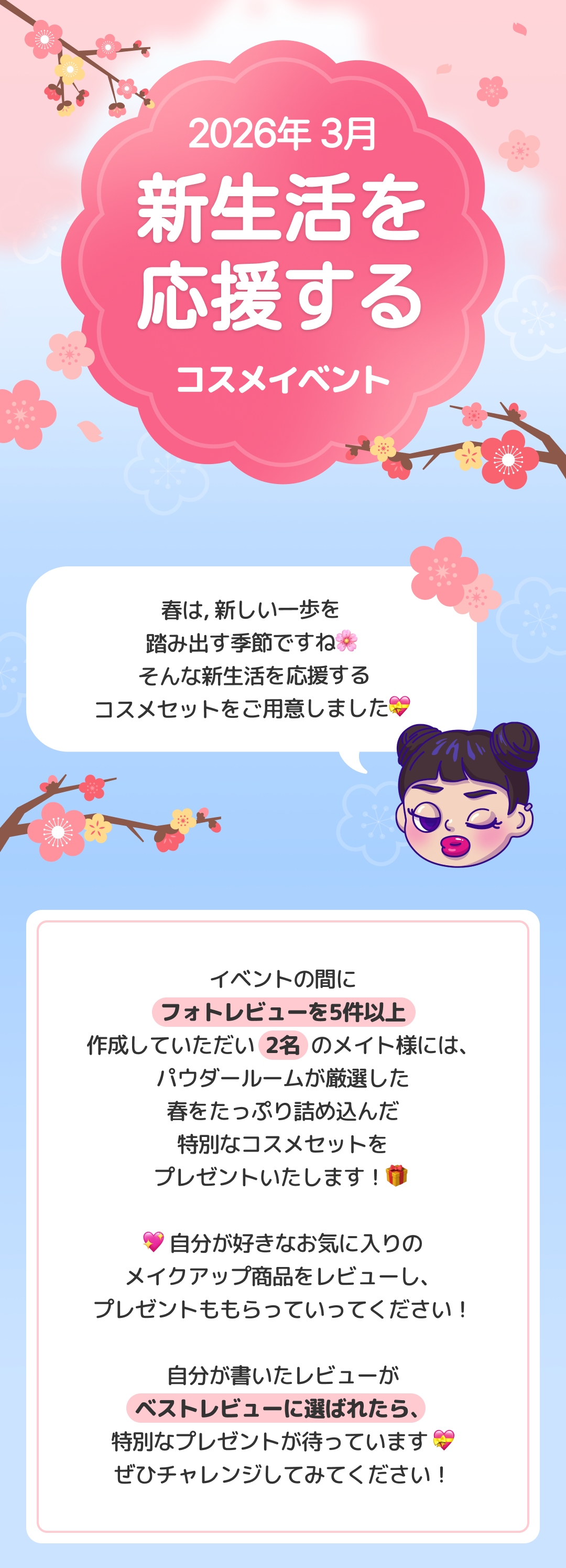 • レビューイベント商品の転売は禁止されており、発覚した場合は、関連するお問い合わせは、support@powderroom.co.jpまでご連絡いただけますようお願い申し上げます。