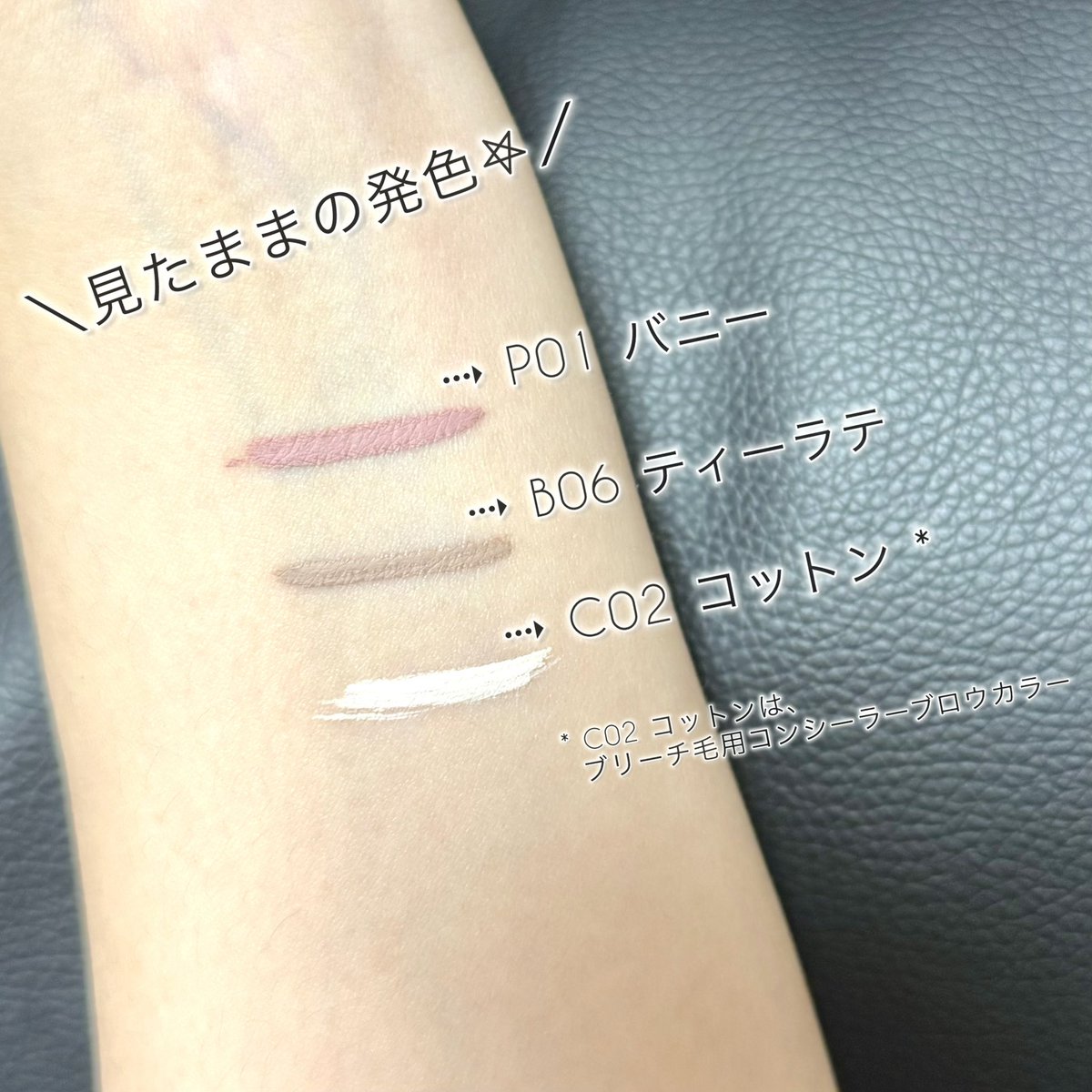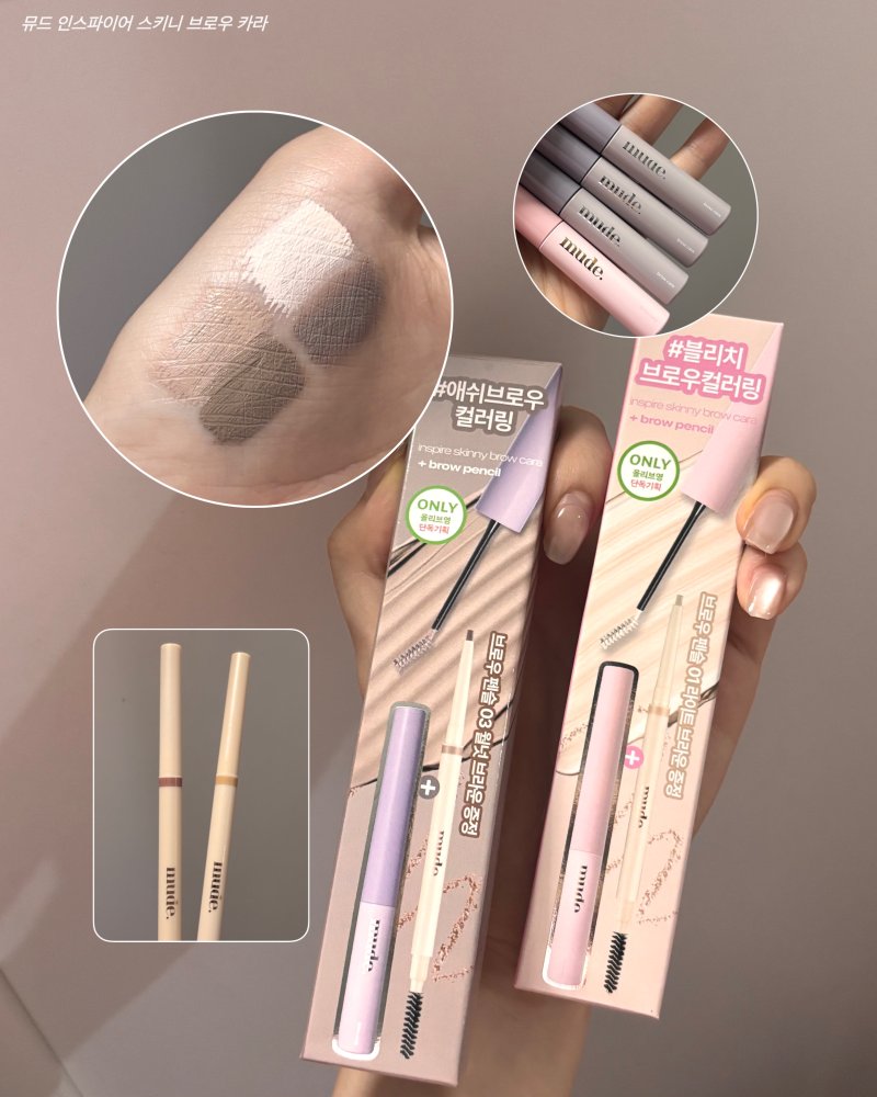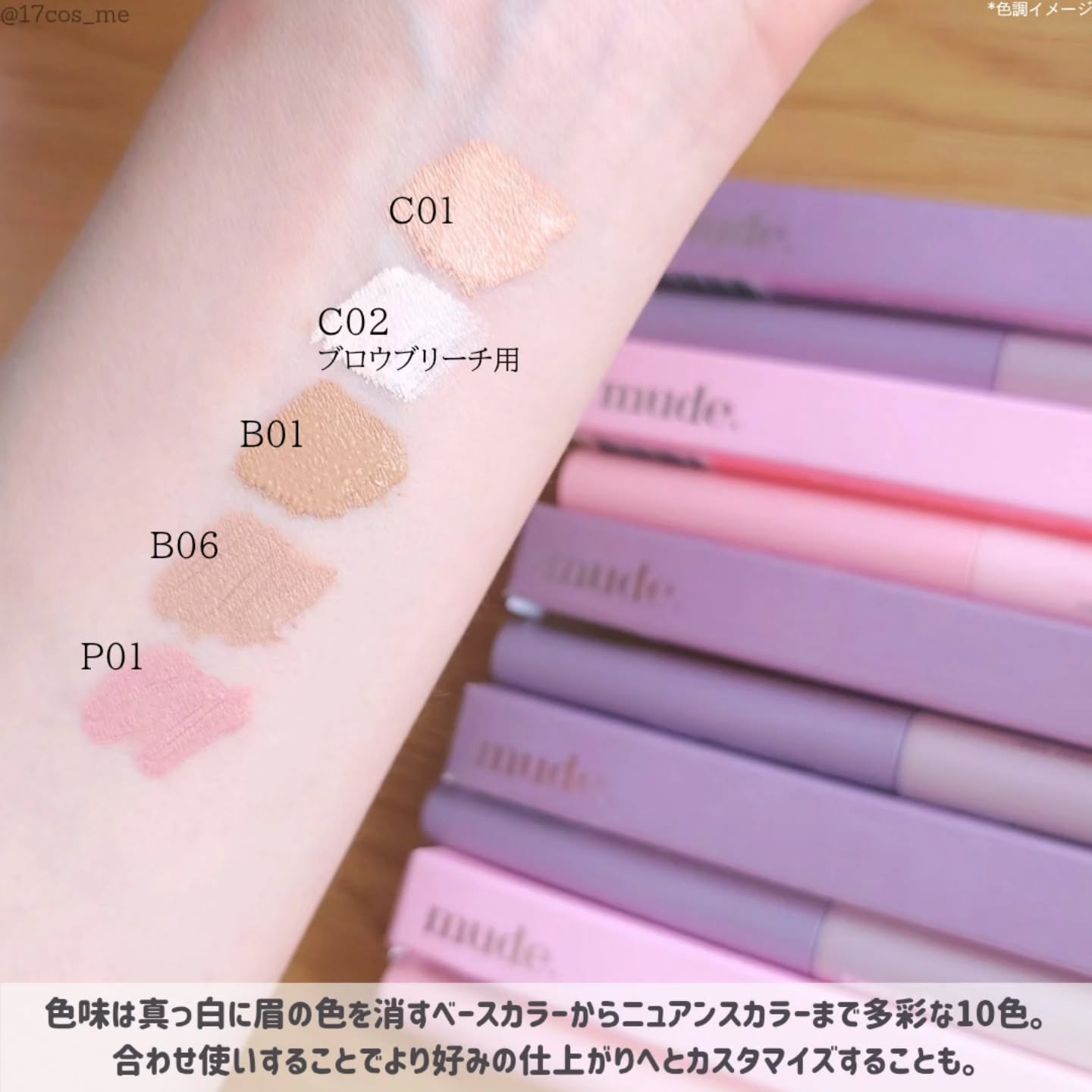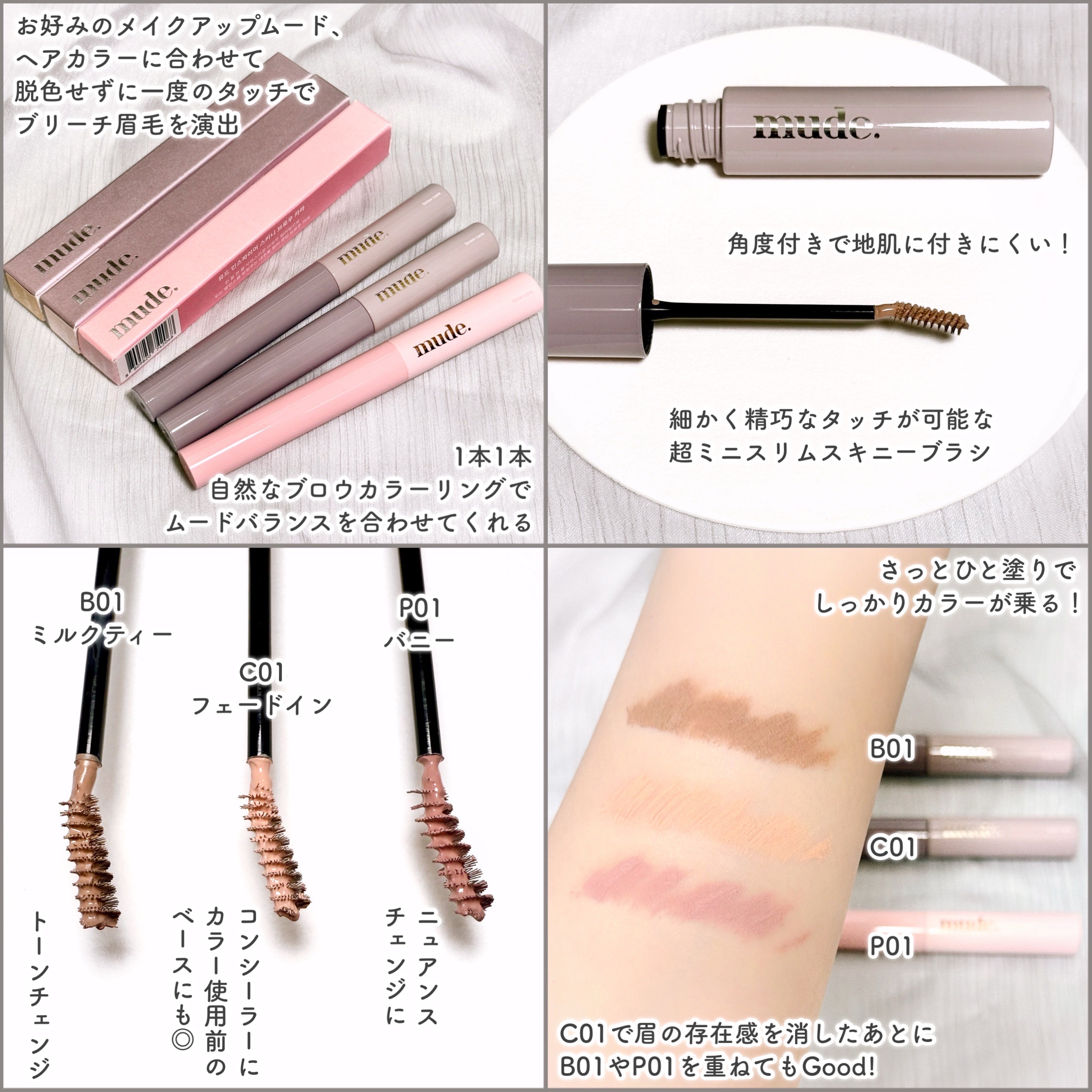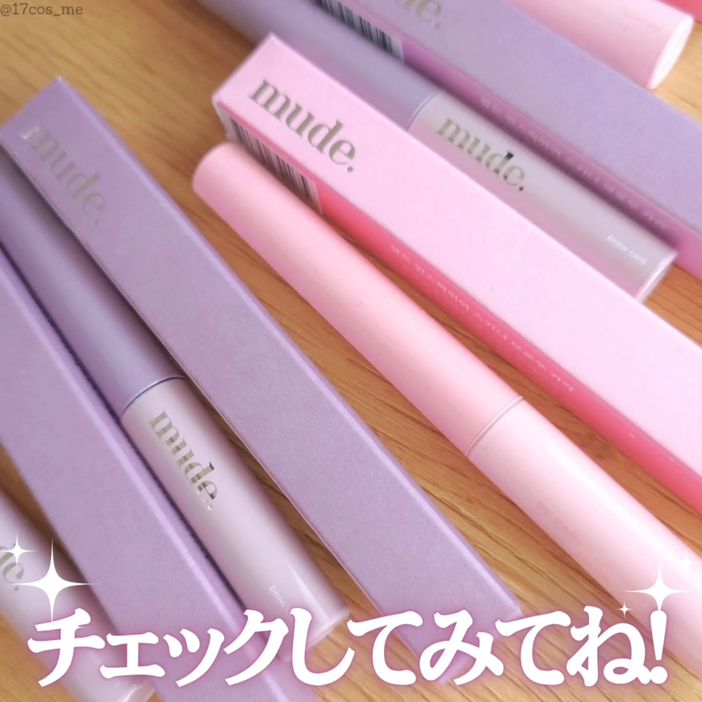 可愛い淡色眉毛が叶う🐰💕 𝕞𝕦𝕕𝕖. 〝インスパイアスキニーブロウカラ〟🌟 🆕5/31に発売したばかりの『P01 バニー』🐰 落ち着いたアッシュ感のあるモーヴピンク系🩷 本当に可愛いカラー😍❤️ B01 ミルクティーとP01 バニーの2色は トーンアップカラー✨ そしてC01 フェードインはカラーをのせる前に眉毛の色を整えてくれるベースカラーで、 併用することにより自然な仕上がりに😆♪ この𝕞𝕦𝕕𝕖. の眉マスカラは、1本1本を自然に 整えてくれるナチュラルカラーセットアップブロウカラー☺️ ♡高速フィクシングで軽やか&ふんわり仕上がるナチュラルテクスチャー♪ ♡密着感のある繊細なタッチでムラなく均一に発色、違和感のないナチュラルカラーチェンジ👍 こんなに淡いカラーになる眉マスカラ、ありそうでなかった〜☺️❤️ ブラシも小ぶりだから地肌に付きにくく、 しっかり色付くから淡色眉になりたい方はコレ一択❣️ 今回ご紹介した3色以外にも、全部で10色展開❗️ お気に入りカラーを見つけてみて🔍✨