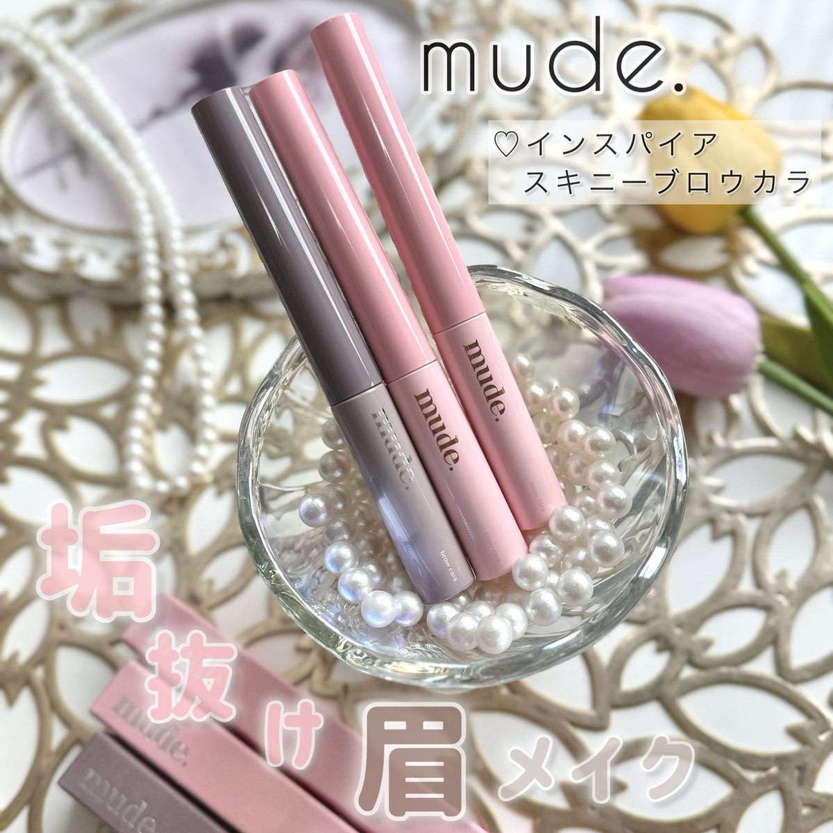 オシャレな眉に簡単大変身✨最近とってもお気に入りの眉マスカラ😍 ✼••┈┈┈┈••✼••┈┈┈┈••✼ mude(@mude_official_jp ) インスパイアスキニーブロウカラ ✼••┈┈┈┈••✼••┈┈┈┈••✼ Powder Roomさま、mudeさまよりいただきました🕊 軽いテクスチャーでふわっと色づいて、毛流れはそのまま、印象だけがそっと整うmudeのインスパイアスキニーブロウカラ。とにかくオシャレなカラーバリエーションで、ムードある垢抜け眉に。 ブラシ自体はとても小さくて若干傾きがあり、眉の根元から1本1本を染めるように色づけられます。濃い眉でもムラなく自然に仕上がります。 明るめのベースカラーと合わせて多色使いすることでさらに眉のトーンが整う。顔印象が本当にガラッと変えられるのでめちゃくちゃお気に入り! #PR #ミュード #mude #ブロウカラ #眉マスカラ #パウダールームプレゼント作成中商品の変更を行う際、