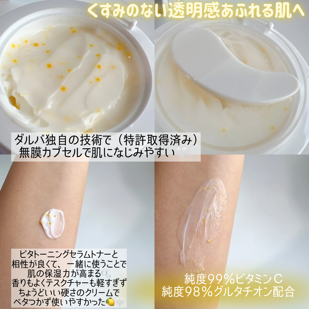 ダルバ ビタトーニングカプセルクリーム カプセルをなじませて使うクリーム🍋 香りもテクスチャーもよくて朝晩使いやすいクリーム! みずみずしく透明感のある肌に🫧 セラムと一緒に使うと🙆♀️🤍