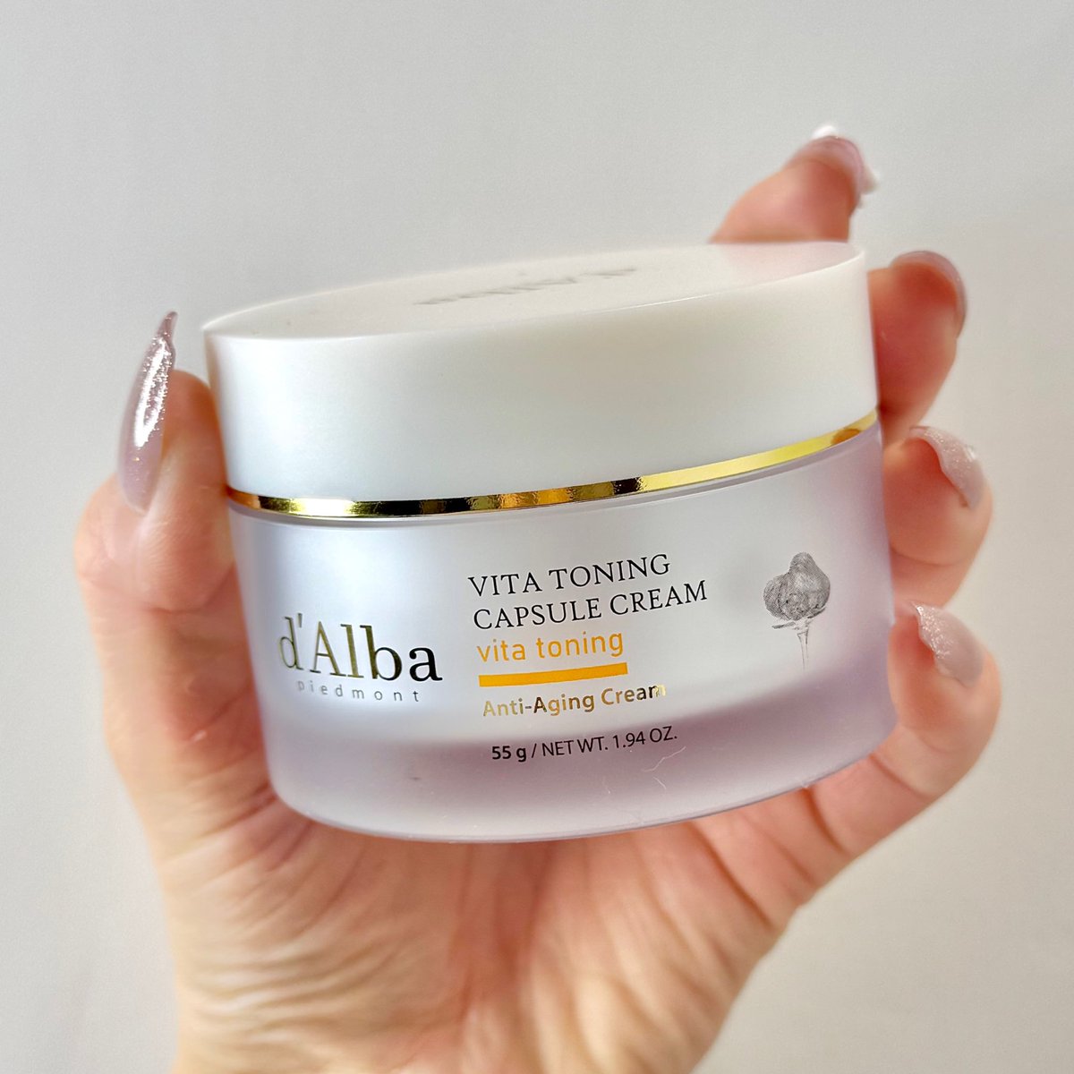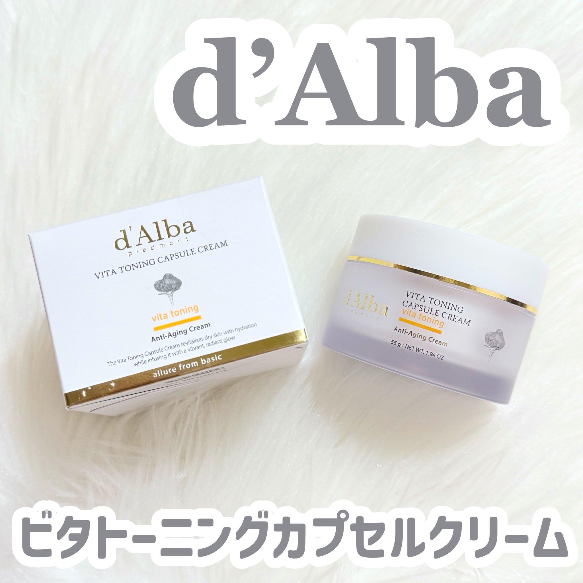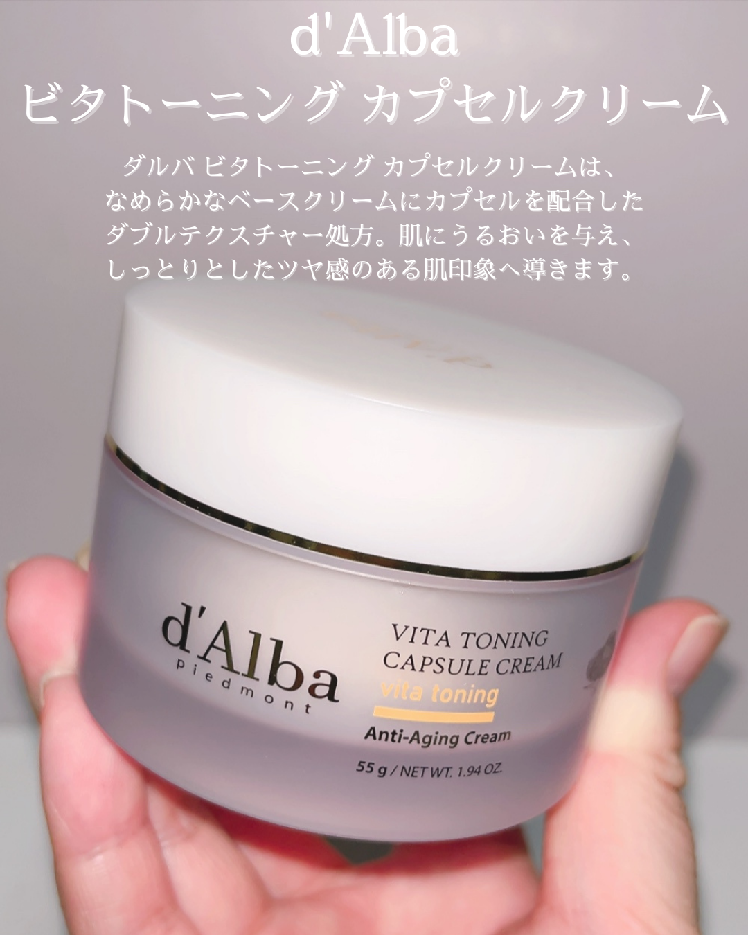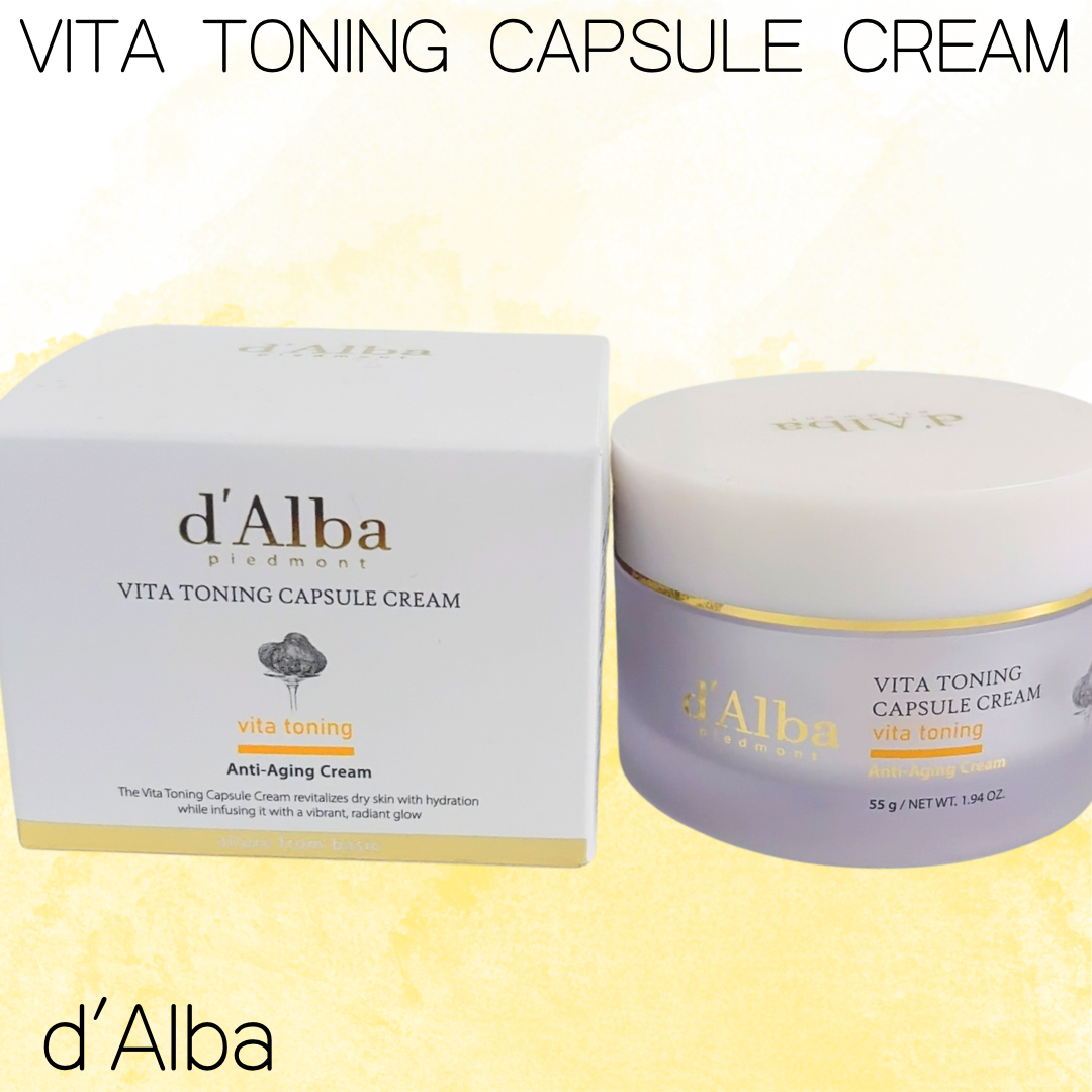 . d’Alba ビタトーニングカプセルクリームはビタミンカプセル入りのダブルテクスチャーが特徴のクリーム。なめらかなクリームの中にカプセルが入っていて、肌にのせると自然になじんでいく感じが気持ちいい。重たすぎず、でもしっかりうるおい感は残るから朝夜どちらでも使いやすい印象😌✌🏻 ベースにはビタミンCとグルタチオン、ナイアシンアミドを配合。さらにカプセル部分にはビタミンKとビタミンEが入っていて、くすみ感や肌トーンが気になるときのケアに取り入れやすい処方。ビタミンウォーター59%配合で乾燥しやすい肌にも水分感を与えてくれるのがポイント! 使い心地は最初はコクがあるのに伸ばすと軽くなって、ベタつきにくいのが好印象。カプセルも肌の上で粒感が残らず、スッと消えていくから摩擦感も少ない。夜はもちろん、朝メイク前でもヨレにくくて使いやすい☀️ 同ラインのビタトーニングセラムトナーやカプセルセラムと一緒に使うと、スキンケアの満足感がぐっと上がる感じ。乾燥によるくすみやハリ不足が気になる人、ビタミンケアをやさしく続けたい人に向いてると思う! #PR #dAlba #ダルバ #ビタトーニング #ビタミン #カプセルクリーム #パウダールームプレゼント