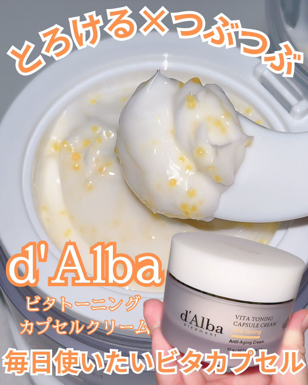 【PR】 やさしく潤う低刺激ヴィーガン保湿クリーム! 肌のくすみ、ハリ、トーンをケアしてくれるカプセル入りのクリーム。 べたつきなく使えて水分感もあるからしっとりうるおう! うるおいとツヤのあるいきいきとした水光肌へ! #PR #dAlba #ダルバ #ビタトーニング #ビタミン #カプセルクリーム #パウダールームプレゼント