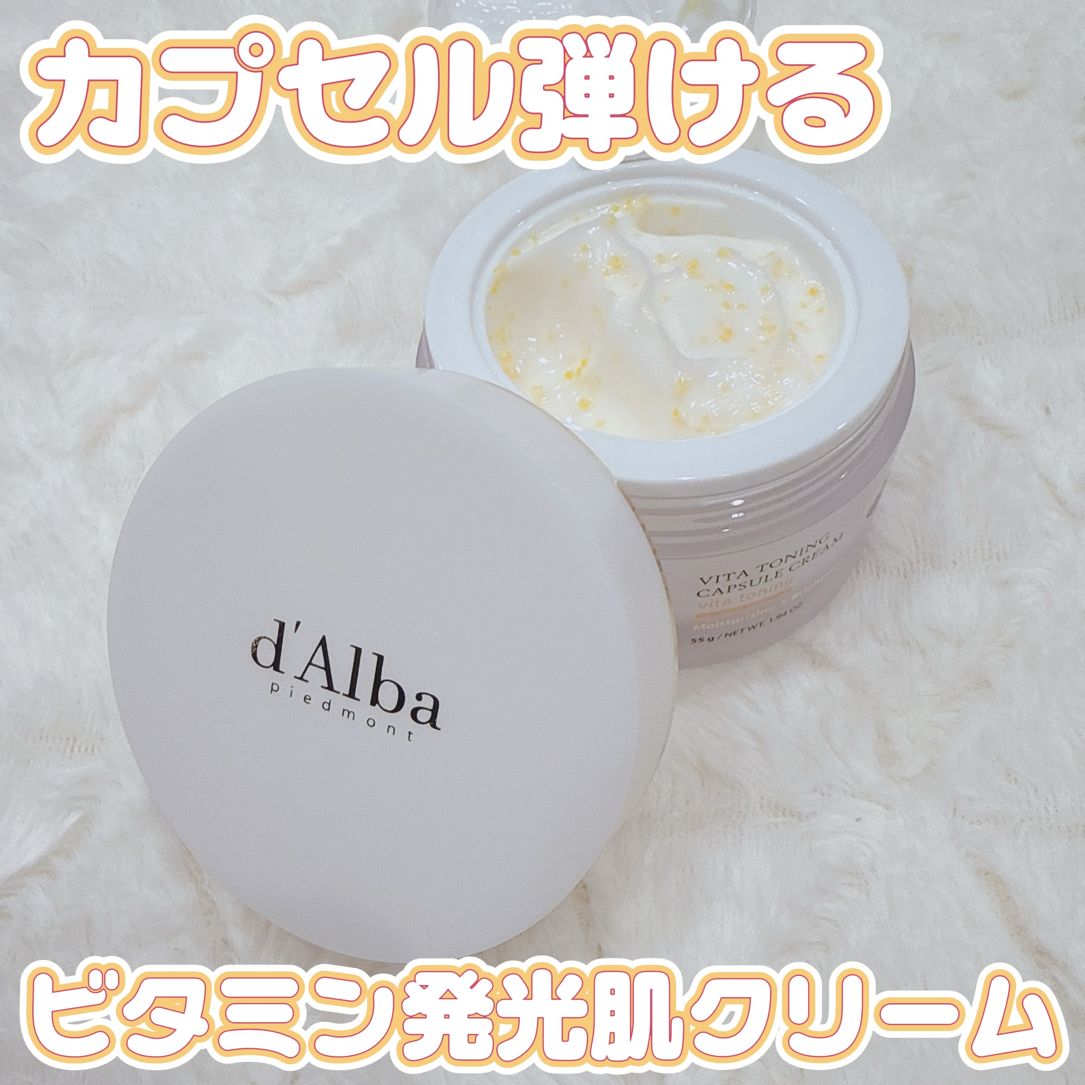 パウダールームさまを通してダルバさまのビタトーニング カプセルクリームをいただきました✨️ つぶつぶ入りのクリームでツヤ感がすごい👏 メイク前にも使えて良き🙆♀️ #PR #dAlba #ダルバ #ビタトーニング #ビタミン #カプセルクリーム #パウダールームプレゼント https://t.co/UxIlKDLv5j
