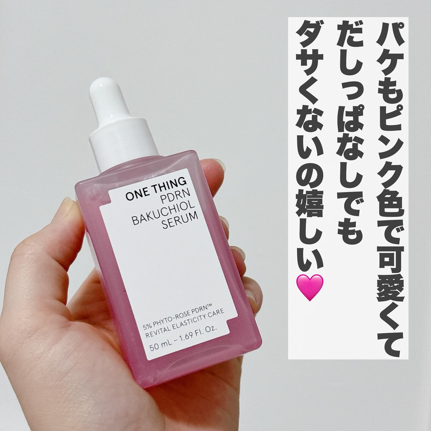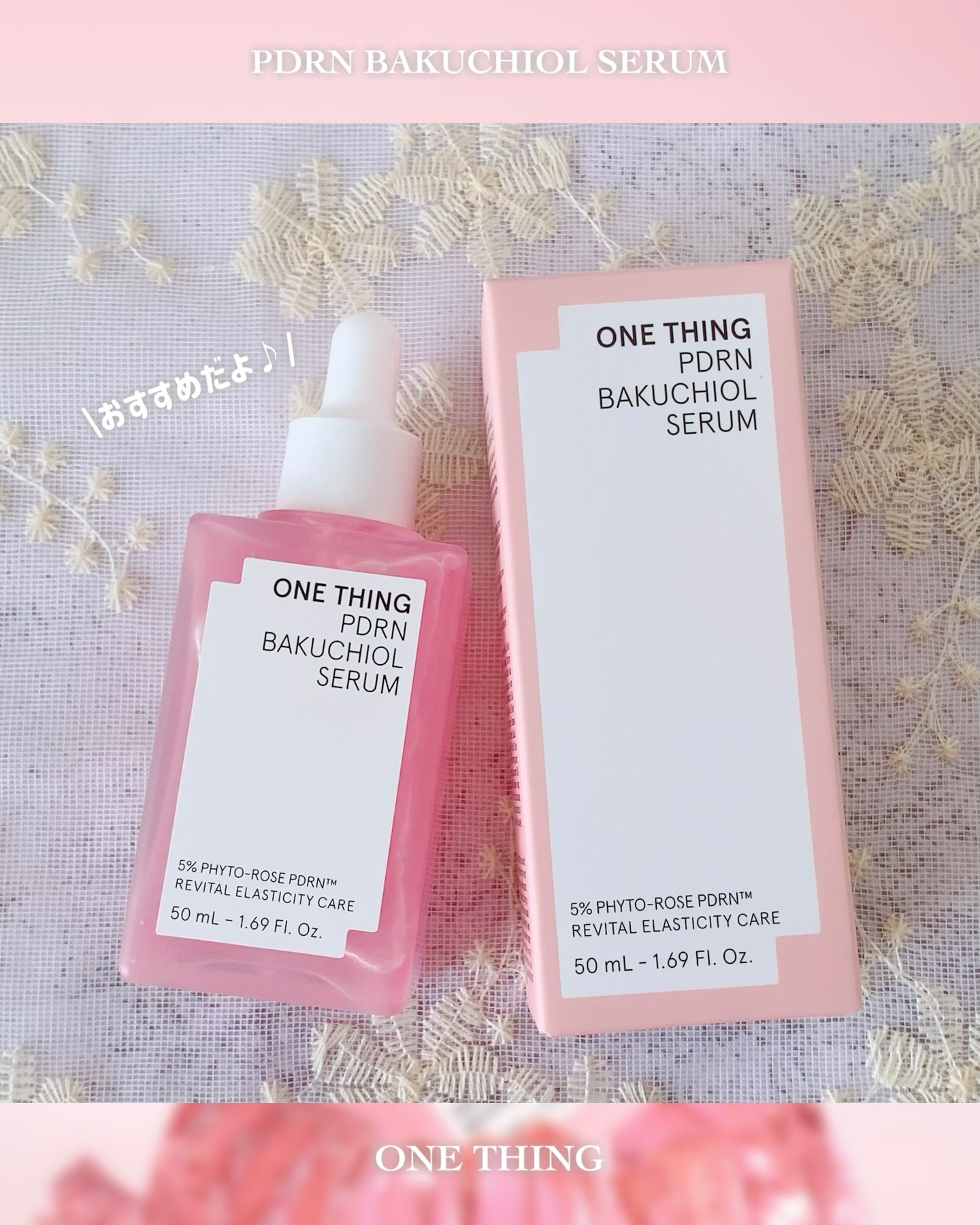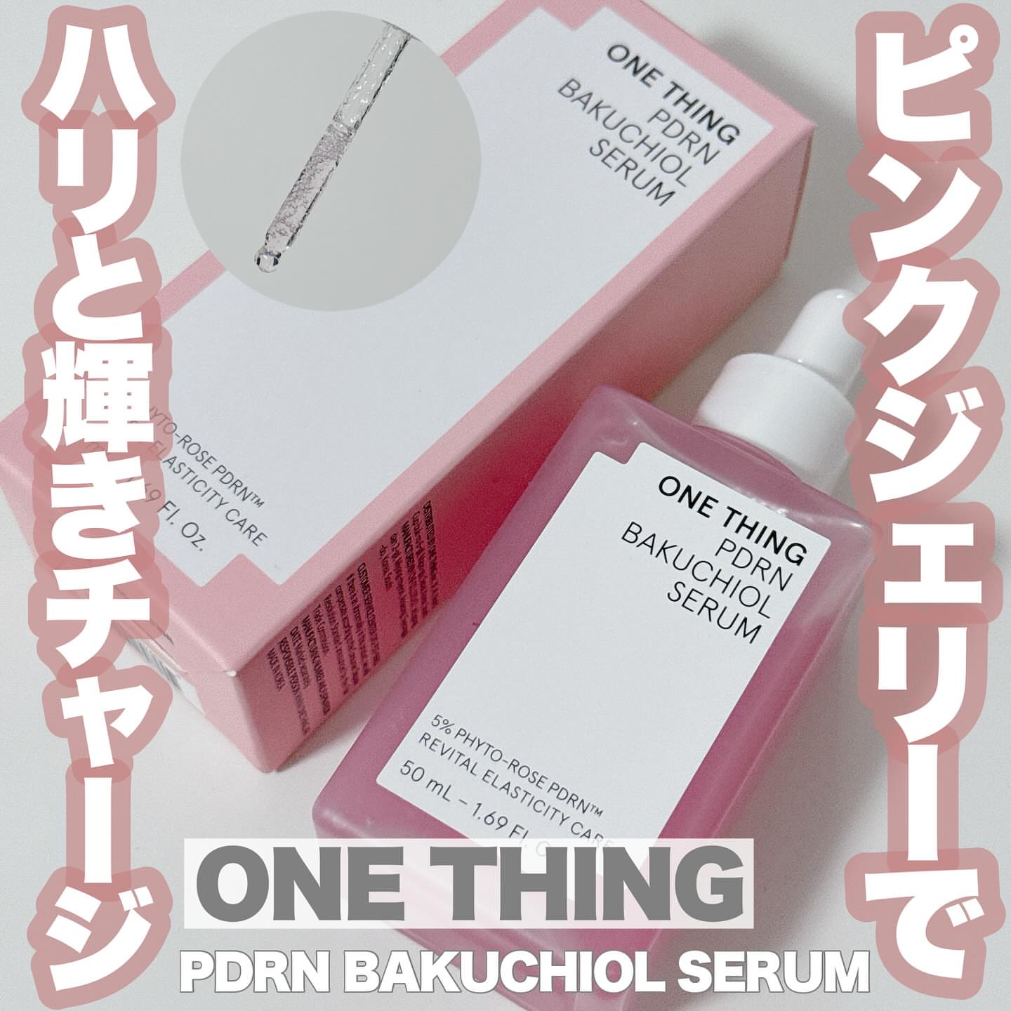 ONE THING PDRNバクチオールセラム ぷるんと弾けるピンクジェリーが肌に 溶け込むたび、ハリと輝きをチャージして くれる美容液🩷ごわつきが気になる肌を 土台から整えて、うるおい・ハリ・ツヤを しっかり届けてくれます💎 キー成分のダマスクローズ由来PDRNは、 人の皮膚組織に近い構造を持ち、肌本来の 力をサポート。内側からふっくらと弾む ようなハリを引き出し、なめらかな肌印象 へ導いてくれます✨ さらに植物由来のバクチオールとNMNが 肌バリアをサポートし、敏感肌でも取り 入れやすいエイジングケアを叶えてくれる! ジェリー状のセラムはみずみずしく軽やか で、肌がすっと飲み込むように浸透※💡 広がるダマスクローズのうるおいが、 透明感と自然なツヤをまとった、思わず 触れたくなるような肌へ導きます✨ ヴィーガン処方・アルコールフリー・ 香料フリーで、敏感肌テスト済みなのも 使いやすいポイントです🌼 ※角質層まで #PR #ワンシング #バラPDRN #PDRN美容液 #メガ割何買う #Qoo10メガ割 #パウダールームプレゼント @onething_official.jp