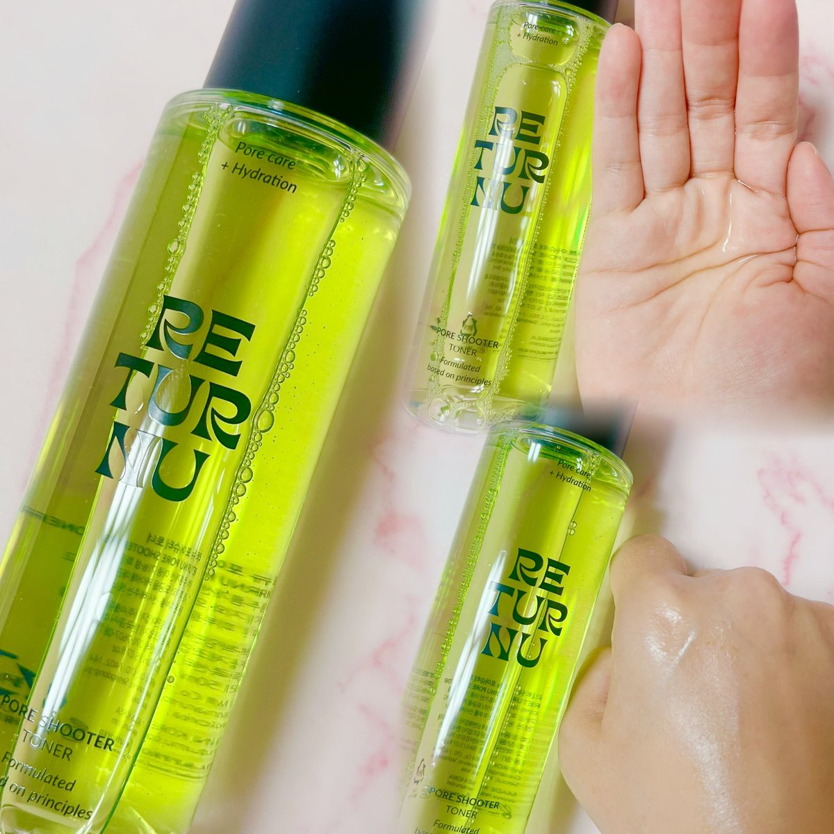 さらっとしたテクスチャーで 保湿力もあってしっとり☺️ 透き通ったグリーンが綺麗💚🧪 Qoo10で購入可能です🛒💨 #PR #毛穴ケア #毛穴 #黒ずみ #化粧水 #リターニュ #パウダールームプレゼント