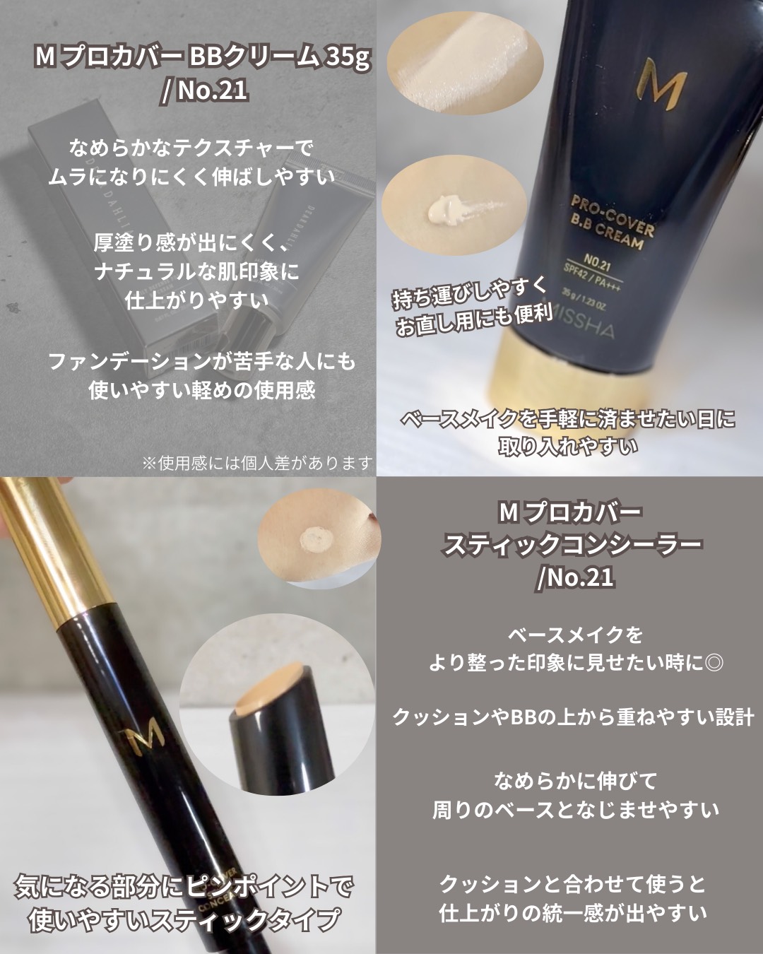 ベースメイクはカバー力と使いやすさのバランス重視✨ ──────────── ミシャ M プロカバーシリーズ Mプロカバークッションファンデーション MプロカバーBBクリーム Mプロカバースティックコンシーラー ──────────── No.21を シーンに合わせて使い分けています クッションファンデーション(プロカバー)は、 ポンポンとのせるだけで 肌全体を均一に整えやすい使用感。 忙しい朝でもベースが手早くまとまるのが◎ プロカバー BBクリームは なめらかで伸びがよく、 ナチュラルに仕上げたい日に使いやすい印象。 クッションより軽めに仕上げたい時にちょうどいいです。 プロカバー スティックコンシーラーは 気になる部分にピンポイントで使いやすく、 クッションやBBと組み合わせると ベースメイクがより整った印象に♡ カラーはすべてNo.21で揃えると 色のなじみも合わせやすく、 重ねても浮きにくいのが嬉しいポイント♡ その日の予定や仕上がりの好みに合わせて、 アイテムを使い分けるのがお気に入り! さらに、1,000円台で購入できる価格帯なのも 嬉しいポイント。 続けやすさと使いやすさを兼ね備えた、 コスパ重視派にも取り入れやすいクッションです✨ クッションは提供頂く前から毎日使用していて10個はリピートしてるお気に入りです♡ ※使用感・仕上がりの印象には個人差があります ──────────── パウダールームさんを通して提供して頂きました♡ @powderroom_jp_event @missha.jp #PR #ミシャ#ミシャMプロカバークッションファンデ#ミシャMプロカバー#クッションファンデパウダールームプレゼント