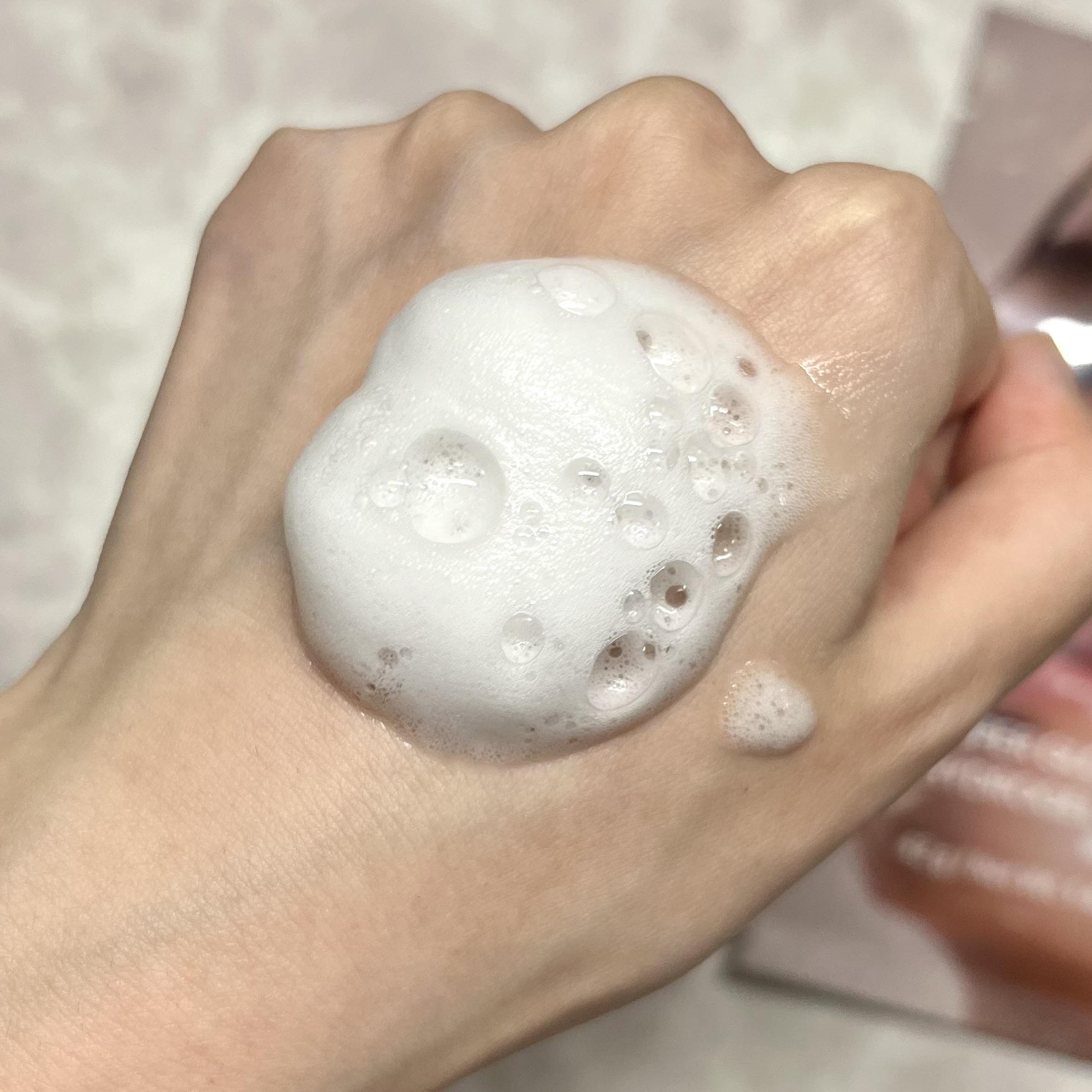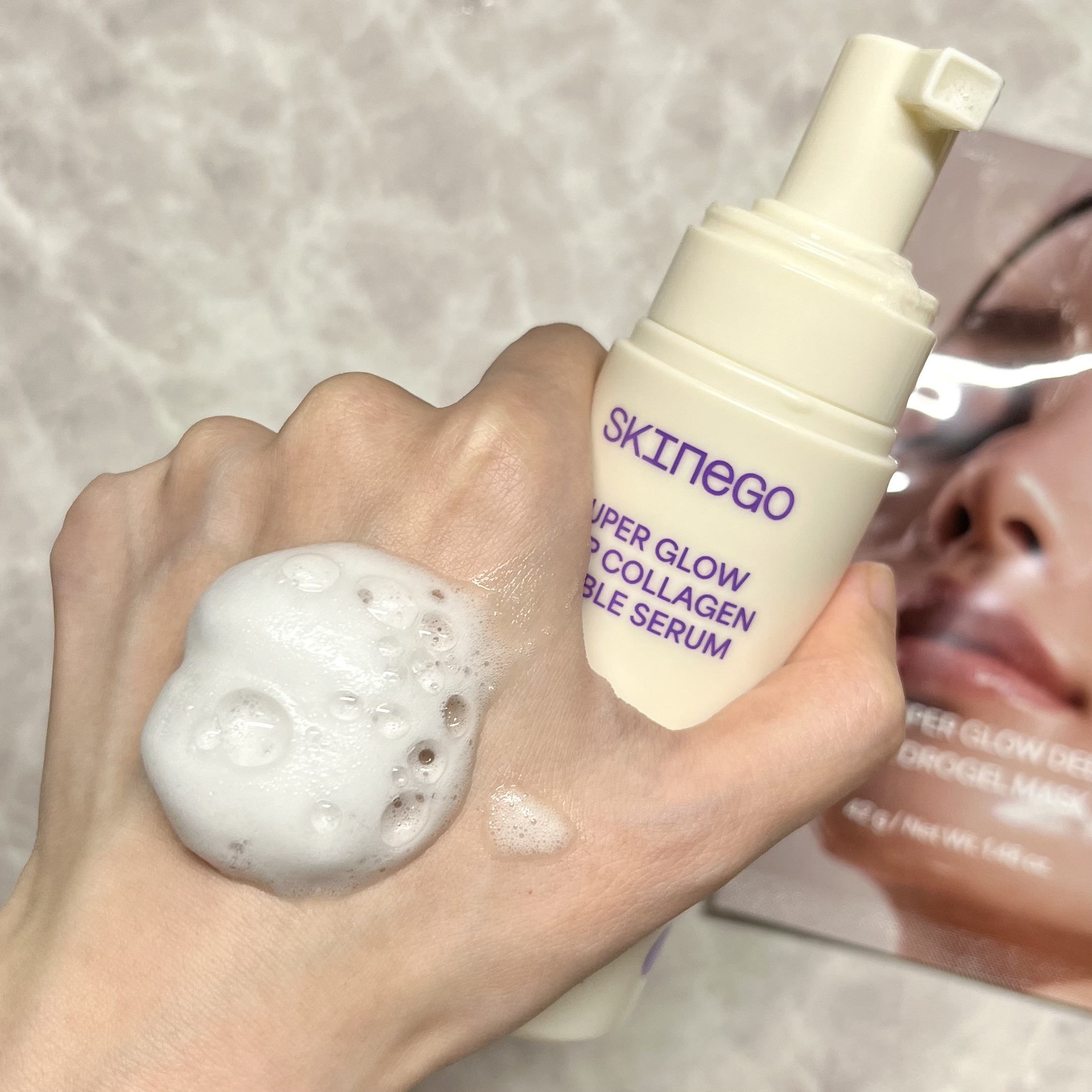 シュワっとした泡で出てくるセラム。肌にのせると美容液が角層まで浸透するそう🫧